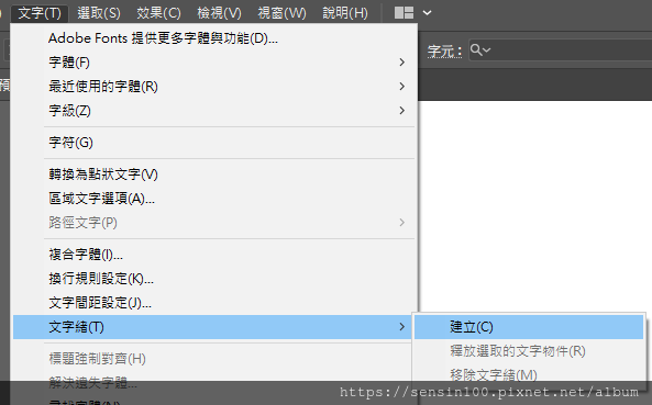 第四步:選擇所有畫板上的文字,執行文字 - 文字緒 - 建立,即可製作頁碼。